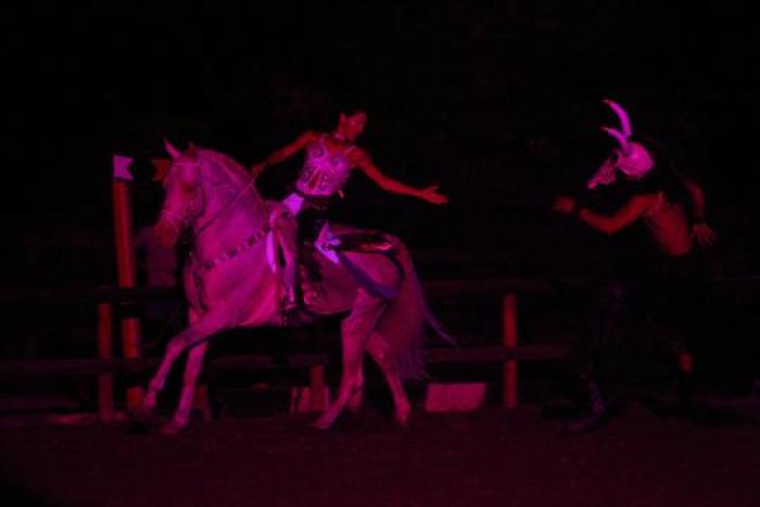 Dalla mitica atmosfera del palazzo di Minosse, dove un’inedita Arianna ha trovato la propria rivincita sul Minotauro, passando per la Francia del XV secolo con l’eroica, seppur tragica, storia di Giovanna d’Arco, fino ad arrivare, dopo un doveroso tributo alle signore della campagna maremmana, alla danza sublime del dressage moderno con Norma Paoli Cirocchi su Andretti Hrh. Le interpretazioni di Arianna e di Giovanna d’Arco sono state eseguite con splendide evoluzioni equestri da Silvia Elena Resta su Fidalgo.